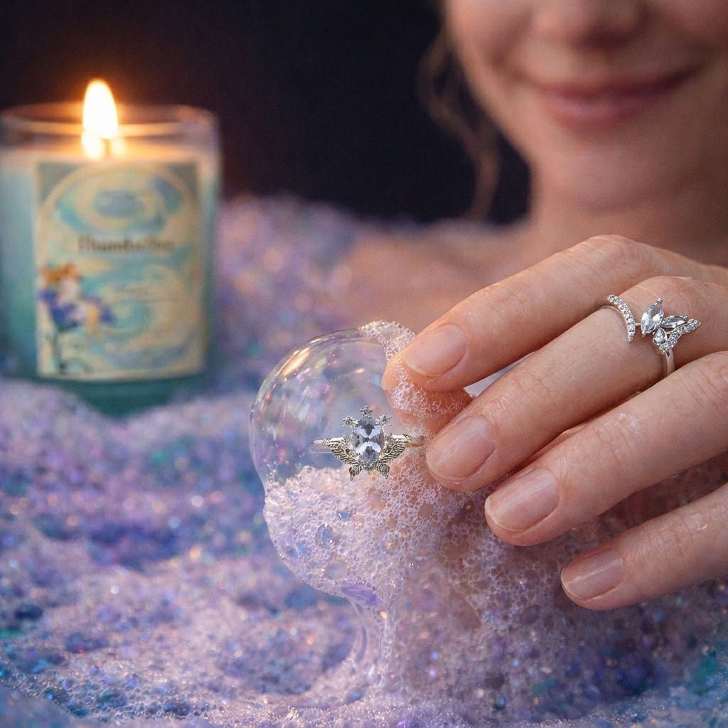 Receive 1 (11oz) Surprise Candle and 1 (6oz) Surprise Bath Bomb with custom-designed ring in each product + a bonus piece of jewelry.